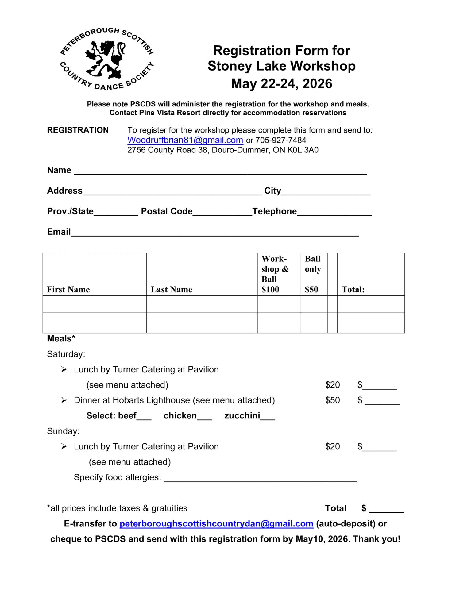 We are looking forward to seeing you at Stoney Lake. You will see lots of familiar faces and some new ones, too! Any questions give me a call at 905-706-0623.