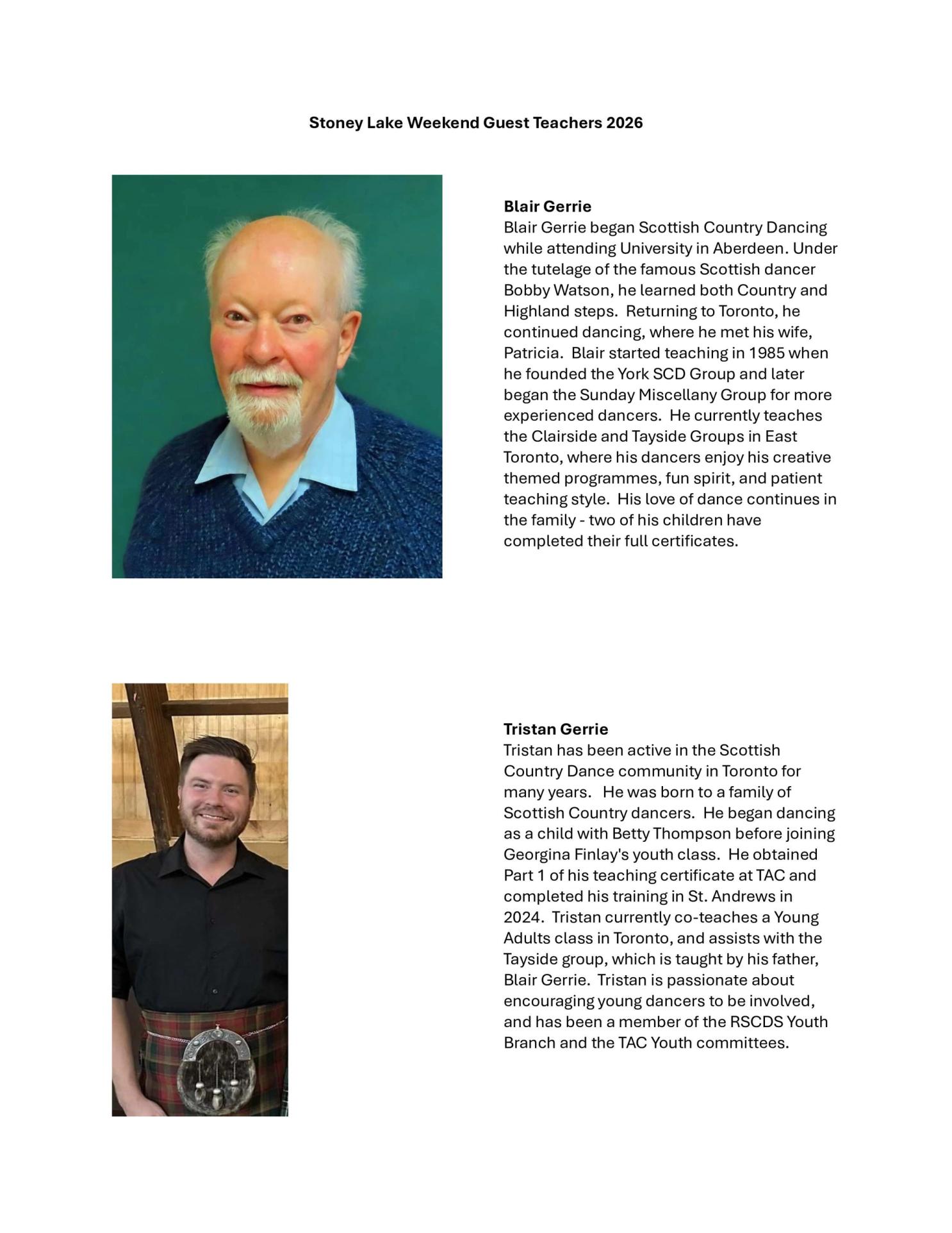 We are excited to have Blair and Tristan Gerrie as guest teachers this year. Their biographies are attached.